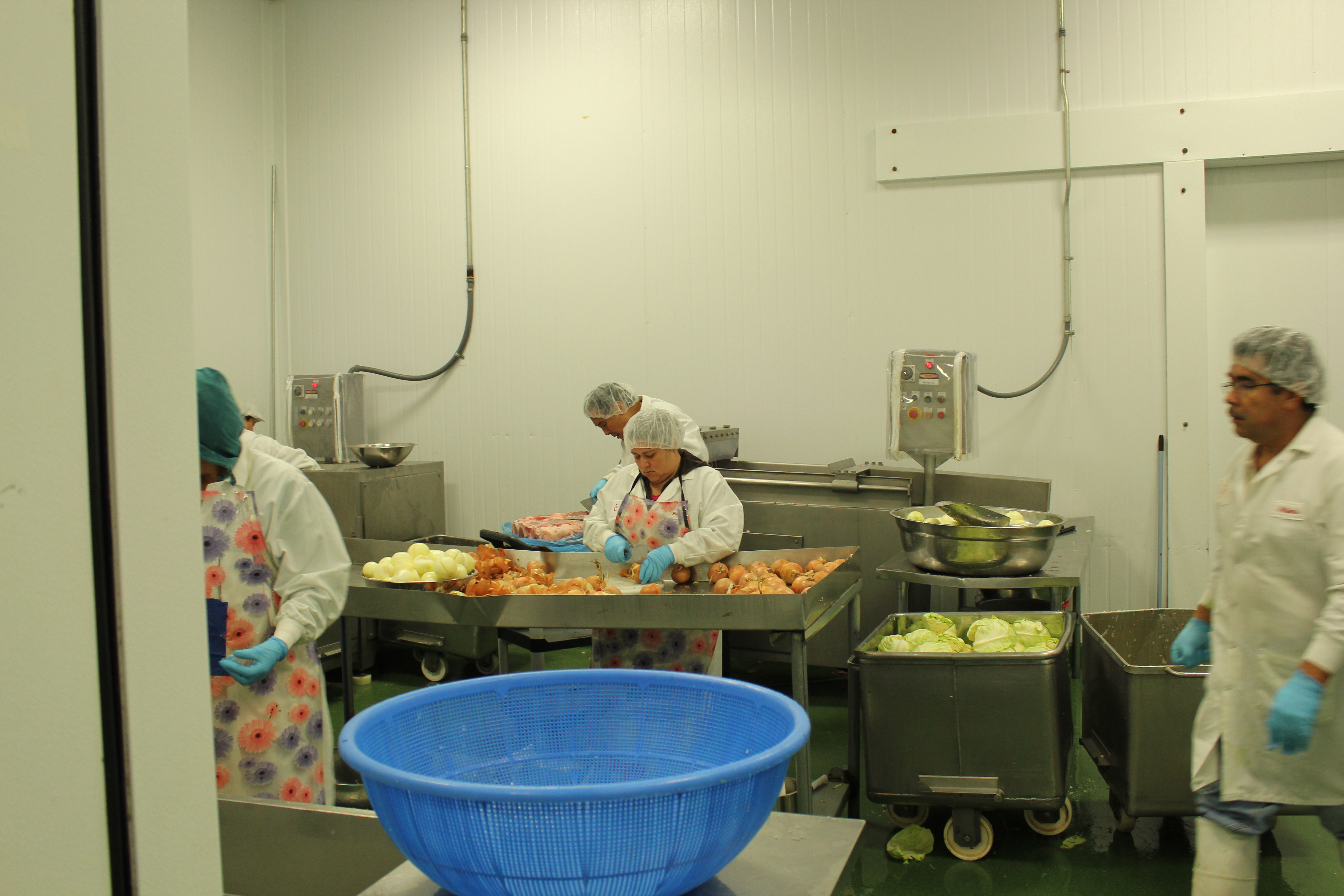 The first thing we did when we got there was walk through the cleaning room. We were told to sanitize our hand then we were all given lab coats! Then we were told to walk through the little room above where air would blow out at us to get rid of any particles hanging onto us. We’d walk out of the room in the black mat to sanitize our shoes. This is the process they go through every morning when the workers start their day in the plant. This was the first time I ever had to be sanitized down completely.